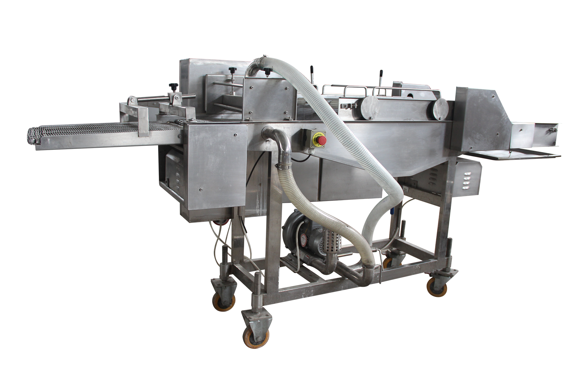 【可以銜接上粉機(jī)、上屑機(jī)、成型機(jī),油炸機(jī)等設(shè)備,從而實(shí)現(xiàn)連續(xù)性生產(chǎn);