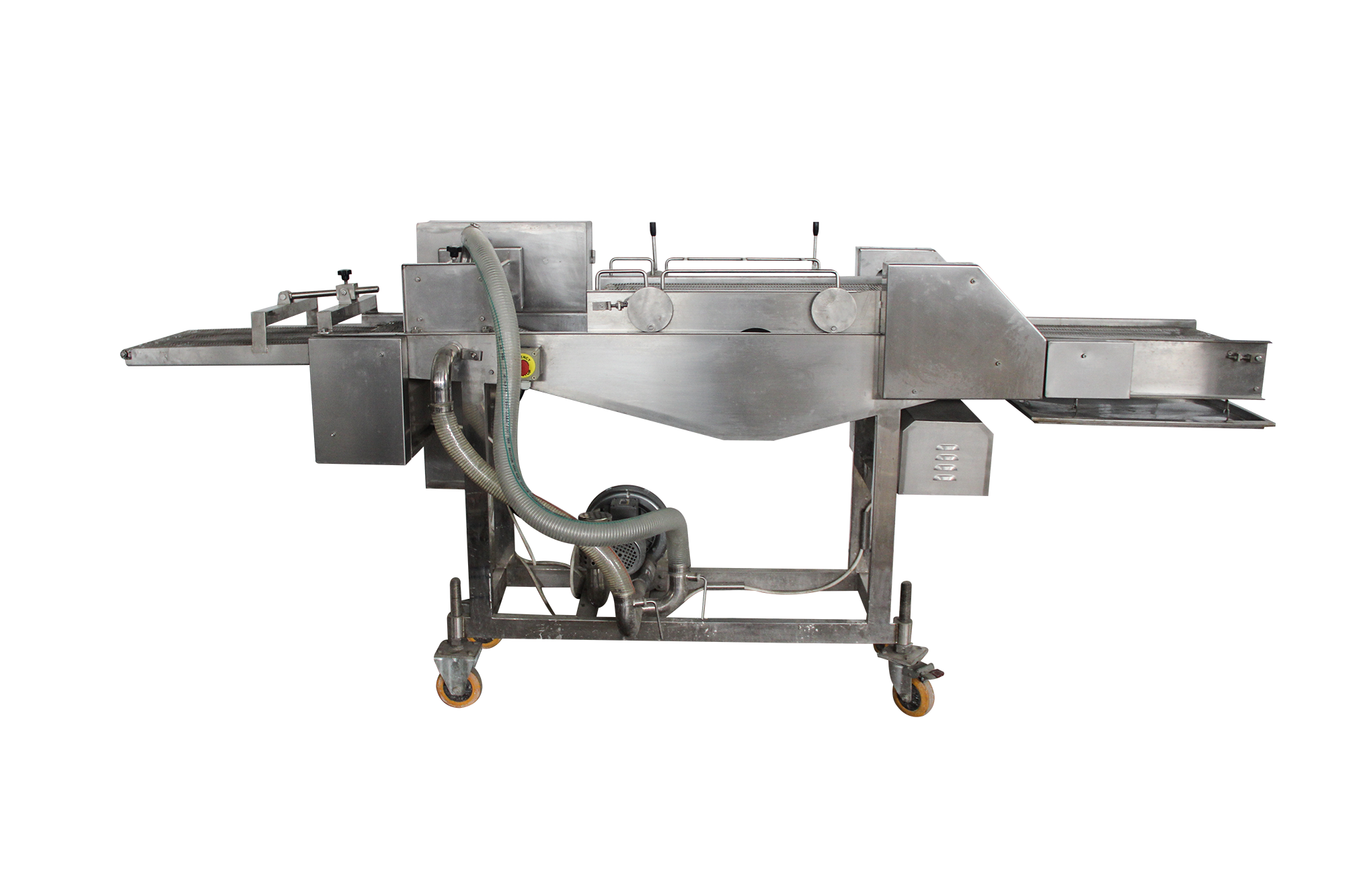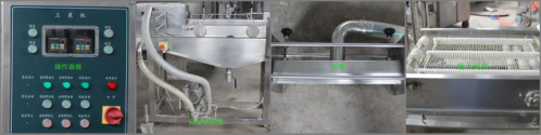 濃漿機(jī)是產(chǎn)品經(jīng)過(guò)上下輸送網(wǎng)帶夾持,在漿液中產(chǎn)品均勻粘附面漿。通過(guò)強(qiáng)有力的風(fēng)刀時(shí),把多余的漿液被吹落。防止多余的漿液然后輸入到下一工序。產(chǎn)品適合于天婦羅產(chǎn)品和裹濃漿產(chǎn)品。