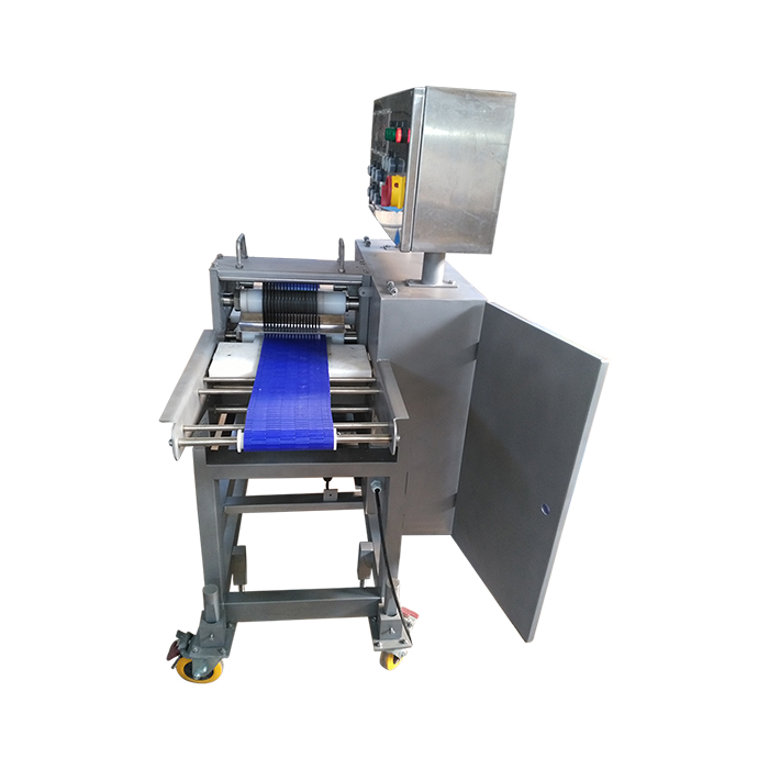 雞胸肉切片切條機是對雞胸肉的橫向(水平)整肉一次性多片切割,,然后通過多組圓盤刀將肉均勻切割成條狀、塊狀,設備可以單獨切片,還可以一次性把整個雞胸肉切成蝴蝶形或者心形的形狀,也可以直接切條。適用于豬牛肉等畜肉、禽肉等新鮮或冷凍原料分切加工。