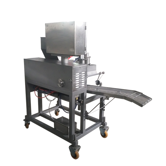 漢堡成型機(jī)由雙螺桿送料,通過(guò)滾筒的轉(zhuǎn)動(dòng)自動(dòng)完成餡料的充填、成型、輸出等工序。雞肉肉餅機(jī)配置除渣系統(tǒng)通過(guò)噴水去掉掛線上的殘?jiān)?。漢堡肉餅機(jī)通過(guò)更換不同的模具可以生產(chǎn)不同形狀的產(chǎn)品(如三角形,橢圓形,卡通雞塊形狀,不規(guī)則形狀);肉餅成型機(jī)適用于肉類(lèi)、水產(chǎn)、蔬菜、奶酪以及它們混合料的成型。還可以做寵物食品。