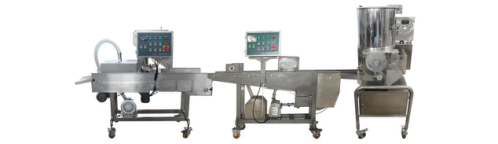 肉餅生產(chǎn)線把混合好的原料經(jīng)過成型,上漿,上康,油炸,速凍等工藝做出不同厚度不同規(guī)格的肉餅。模具可以生產(chǎn)不同形狀的產(chǎn)品(如三角形,橢圓形,卡通雞塊形狀,不規(guī)則形狀)通過模具更換產(chǎn)品。肉排生產(chǎn)線適用于肉類、水產(chǎn)、蔬菜、奶酪以及它們混合料。魚餅生產(chǎn)線的需要配置前處理設備和后處理設備:絞肉,混合,油炸包裝等設備,蝦餅生產(chǎn)線與這些配套設備組成一條完整的快餐調(diào)理生產(chǎn)線。