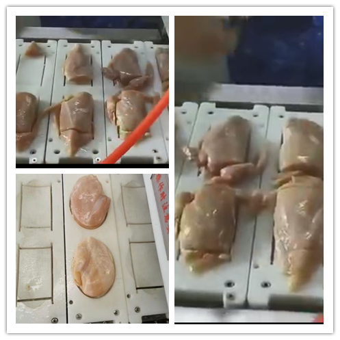 鮮肉整形機通過過更換不同的刀組把各種鮮肉切成成各種方形,圓形,橢圓形及其他異形等。切割后的成型產(chǎn)品均勻,可以做高品質的產(chǎn)品。節(jié)省人工,外形完美一致。能顯著的提高產(chǎn)品質量以及生產(chǎn)效率。