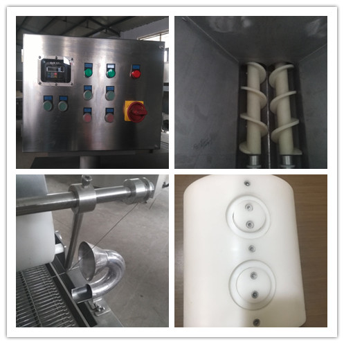 滾筒成型機可以生產(chǎn)魷魚圈,洋蔥圈,雞塊等各種形狀的產(chǎn)品,通過更換模具,可以連接濃漿機和上糠機和油炸機和速凍機組成一條流水線,